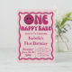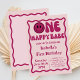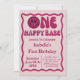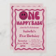 Um Feliz Aniversário De 1rua De Bebê. Curva rosa e vermelha ondulada ondulada invertida Convite à onda retrorreflector Curva de onda cor-de-rosa ondulada moderna Uma menina feliz 1rua Primeiro Convite de Aniversário. Um Convidado Feliz Para Bebê Primeiro Aniversário.