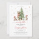 Celebre a alegria da sua chegada com o nosso adorável convite para chás de fraldas de Natal. Apresentando uma aquarela fofa árvore de Natal cercada por animais florestais: urso e beliche, este convite captura perfeitamente o espírito de uma doce celebração de inverno. Ideal para adicionar um toque festivo ao seu chá de fraldas de férias!