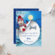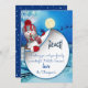 Uma cena de Feriado de inverno Azul com Papais noeis voadores no seu trenó e um vitrino bem embrulhado para um cartão de boas intenções para personalizar.