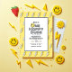 Celebre o seu grande dia em estilo retrô verdadeiro com este convite para primeiro aniversario "Um Cara Feliz"! Apresentando ousados relâmpagos, uma face de sorriso ranhosa, e uma tipografia retrô divertida, esta alegria alegre e inspirada na década de 70 com uma reviravolta moderna. Perfeito para um cheio de celebração sorridente de sinais de paz, boas vibrações e diversão colorida!