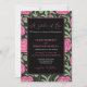 Um Jardim do Amor. Design elegante com padrão de flores cor-de-rosa e caligrafia de tendências em fundo preto. Esta design é perfeita para o seu simples e elegante casamento floral. O texto pode ser facilmente personalizado para um único design único para o seu dia especial.