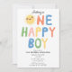Um belo design de convite de aniversário solar desenhado. Um belo "Um menino feliz" temeu o primeiro convite de aniversário. Um belo tema de convite para o aniversário do sol de verão que pode ser personalizado para seus detalhes.
