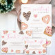 Um pouco de amor está a caminho, um chá de fraldas de rosquinhas namorados amorosas com ilustração adorável e original de rosquinhas em forma de coração em um padrão de sobremesa cor-de-rosa e chocolate com uma tipografia de escrita de pincel em forma de letra cardíaca.