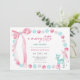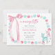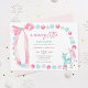 Este convite de chá de bebê "Merry Little Christmas" apresenta um design festivo e delicado com uma paleta de cores pastéis em tons de rosa, azul e branco. Um laço de água-forte cor-de-rosa caprichoso no canto superior esquerdo e uma borda de bolhas pastéis que lembram enfeites de Natal enquadram o cartão. Dois adoráveis cervos bebês adornam o canto inferior direito, adicionando um toque doce e sazonal. O design combina lindamente o espírito natalino com um clima suave e acolhedor para um chá de bebê de menina.