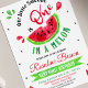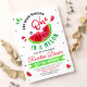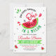 Celebre o seu primeiro aniversário com o nosso num Convite de Aniversário de Melon. Design apresenta uma fruta de melancia semirida em aquarela com o texto "nosso pequeno docinho é um de melão".