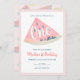 Este "Um em um Melão" bonito, convite para primeiro aniversario da menina, apresenta um fundo branco com uma melancia fatiada por uma borda rosa e pincelada. O verso apresenta um fundo cor-de-rosa pincelado com padrões de melancia. Personalize para suas necessidades.Você pode encontrar mais produtos correspondentes na minha loja.