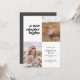 Este anúncio de graduação moderno apresenta as palavras "começa um novo capítulo" no canto superior esquerdo do cartão. Tem espaços para duas fotos verticais para celebrar sua jornada de formando até agora, uma foto do passado e uma foto do presente. A frente do cartão tem espaço para o nome do formando, ano de aula, escola e planos futuros. A parte traseira do cartão tem espaço para texto adicional e pode ser usada como convite de festa de formatura ou para escrever uma mensagem pessoal.