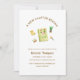 Começa um novo capítulo, tema do chá de fraldas do livro, chá de fraldas neutro de gênero, design com decoração de livros de cores verdes da natureza com ferramenta de jardim e árvore sobre fundo branco. Você pode personalizar seu próprio texto e cor através de "personalizar este design".