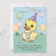 Celebre o seu primeiro aniversário com este charmoso convite do "Um Pato Sortudo"! Apresentando um adorável patinho amarelo em um chapéu de festa, balões de pastel macio e detalhes de festas personalizáveis, este doce design dá o tom para um dia alegre cheio de selas de diversão. Perfeito para meninos ou meninas, é uma maneira deliciosa de convidar convidados para a sua comemoração teatral!