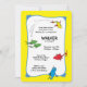 Celebre o seu primeiro aniversário com este divertido convite de "Um Peixe Dois Peixes", inspirado no "Um Peixe Dois Peixes Vermelhos" do Dr. Seuss. Apresentando ilustrações vibrantes e uma design engraçada e caprichosa, este convite é perfeito para uma primeira festa de aniversário. Quer você esteja planejando uma comemoração temática do Seuss ou simplesmente ame o espírito aventureiro do livro, este convite adiciona um toque alegre ao seu evento especial. Uma escolha ideal para os fãs do Dr. Seuss e aqueles que procuram tornar o primeiro aniversário do seu filho inesquecível.