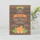 Este convite de chá de bebê fofo apresenta um gráfico de uma abóbora em cores vibrantes sobre um fundo de madeira rústica. O design é acentuado com uma flor rosa para torná-lo perfeito para a bebê.