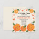 Um belo convite de chá de fraldas, sem distinção de gênero, com clementinas e corações.