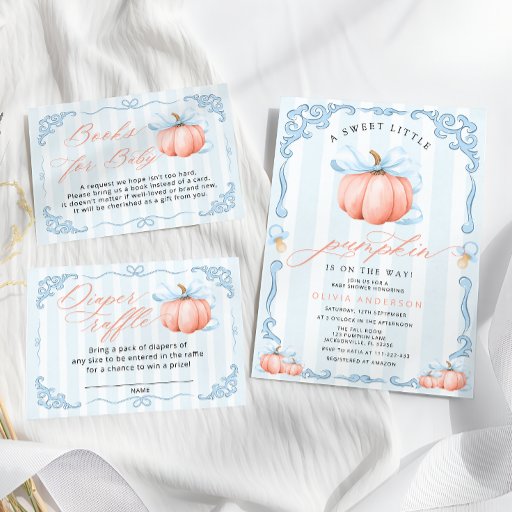 Um Pequeno Convite De Chá de fraldas De Arco Azul De Abóbora. Itens correspondentes disponíveis.