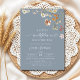 Um charmoso convite à chá de fraldas azul de "A Little Wildflower" empoeirado, com elementos florais delicados e um design rústico, mas elegante. Perfeito para uma celebração inspirada na natureza, este convite combina a simplicidade moderna com detalhes de flor silvestre, criando uma estética quente e convidativa para honrar o futuro pai.