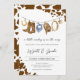 COWBOY COW (AZUL) - Este adorável convite para chá de fraldas South Western, Rodeo Cowprint, Cowboy Boy é totalmente editável, pode ser impresso e enviado por e-mail ou o evento de aniversário pode ser compartilhado por e-mail e mídia social! Este Convite para Chá de fraldas Cowboy mostra um par de Boots & Cowboy Hat, Lasso, e uma bandana azul pendurada numa linha, cercada por uma pegada marrom. Também está incluída uma parte traseira marrom. Este Wild West Rodeo, o Convite ao Chá de fraldas está certo de concluir qualquer chá de fraldas do Ocidente, revelação de gênero, ou outro evento temático do cowboy! Ao usar o software Zazzle fácil de usar (sem download necessário) no seu navegador, você simplesmente compra e personaliza tudo no mesmo lugar. É tão fácil assim!