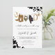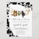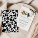 COWBOY COW (BLACK) - Este adorável convite para chá de fraldas South Western, Rodeo Cowprint, Cowboy Boy é totalmente editável, pode ser impresso e enviado por e-mail ou o evento de aniversário pode ser compartilhado por e-mail e mídia social! Este Convite para Chá de fraldas Cowboy mostra um par de Boots & Cowboy Hat, Lasso, e um bandana verde pendurado numa linha, cercado por uma pegada preta. Também está incluída uma impressão de fundo preta. Este Wild West Rodeo, o Convite ao Chá de fraldas está certo de concluir qualquer chá de fraldas do Ocidente, revelação de gênero, ou outro evento temático do cowboy! Ao usar o software Zazzle fácil de usar (sem download necessário) no seu navegador, você simplesmente compra e personaliza tudo no mesmo lugar. É tão fácil assim!