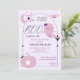 Um pequeno convite para o chá de fraldas de Halloween cor-de-rosa-boo, um modelo instantâneo de download digital instantâneo, um bebê fantasma rosa, morcegos de lua celestial e abóbora no Halloween chá de fraldas convite modelo