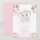 Sonho Moderno Convite Para Chá de fraldas De Elefante Floral De Cor-De-Água Rosa-Rosa