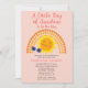 Mais fofo do que "Um Pequeno Raio de Sol Está a Caminho", Chá de fraldas design de menina com um pequeno e divertido sol de desenho com um par de óculos de sol cor-de-rosa deitados abaixo do seu rosto sorridente e bochechas rosadas. O sol está rodeado por um belo arco-íris cardíaco gradado de três níveis em tons de rosa rosado, amarelo e laranja. "A Little Ray of Sunshine" e "Is On Her Way" são ambos ineditáveis (exceto pelo designer) — podem ser apagados, mas não modificados. Apresenta um fundo branco na frente e um fundo de coloração retroativa em rosa, amarelo e laranja no verso. Design composto por Designs Holiday Hearts.