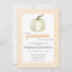 Um Pequeno Convite à Chá de fraldas Pumpkin Celebra a doce chegada de um pequeno com este charmoso convite para chás de fraldas de outono da nossa suíte de chás de fraldas "A Little Pumpkin". Apresentando uma abóbora de cor branca macia pintada a aquarela e uma maca de xadrez de gingham quente, este convite é perfeito para uma aconchegante de outono e dá o tom aos chás de outono com uma vibração rústica. Parte de uma coleção de coordenação completa, este convite facilita o estilo de todo o seu chá de fraldas com itens que combinam, como placas de fralda, notas de favor, etiquetas de favorecimento, cartazes, e muito mais, todos com a mesma paleta quente e o mesmo tema de abóbora branca. Totalmente personalizável com seus detalhes de evento, este convite é ideal para chás de fraldas durante a temporada de outono. A elegante tipografia serif emparelhada com trabalho de arte de aquarela cria um design eterno que funciona lindamente para temas neutros em gênero. Quer você esteja planejando uma festa de abóbora ou um chá de queda de uma fazenda, este design adiciona um toque pessoal e festivo ao seu evento.