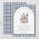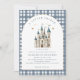Um Convite para Chá de fraldas do Castelo Real do Pequeno Príncipe - Um Convite para Chá de fraldas do Castelo Real do Pequeno Príncipe - um adorável convite para chás de fraldas com um castelo real em azul e branco com estrelas douradas acima. O convite é acentuado por xadrez azul empoeirada, e tipografia moderna. Um ajustado de convite para sua alteza real!