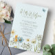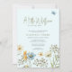 Moderna cor d'água floral "um pequeno flor selvagem está a caminho" boho chic elegante azul primavera convite para o chá de fraldas com flores silvestres naturais na fronteira florida e borboletas.