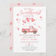 Este adorável convite para o chá de fraldas apresenta uma aquarela cor-de-rosa pickup caminhão carregando três balões em forma de coração, rodeados por pequenos corações cor-de-rosa flutuando no ar, sobre um fundo branco com iluminação suave. Um estilo verdadeiramente romântico. Se precisar de outro produto ou personalização correspondente, entre em contato comigo.