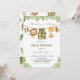 Celebre a chegada do seu pequeno aventureiro com este adorável Convite A Um Chá de fraldas Selvagem. Apresentando um encantador tema da selva safari de aquarelas, esta design apresenta uma linha verde de roupas enfeitiçada com animais bonitos como um leão e girafa, um colete safari e equipamento de aventura. Este convite moderno e na moda dá o tom para uma celebração divertida da selva. Torne seu chá de fraldas realmente selvagem e memorável! BBS977