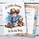 Menino Bonitinho e Bebê Teddy Bear Azul e Castanho, ilustração com aquarela, convites para chuveiros de bebês. Um cowboy está a caminho.