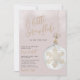 Celebrar a mãe com este chá de fraldas de inverno cor-de-rosa-claro com uma ilustração minimalista de aquarela de um ornamento de vidro com um dentro de floco de neve.