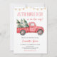 Celebre a chegada do seu pequeno pacote de alegria com o nosso convite festivo de um Pequeno Pacote de Alegria chá de fraldas! Este convite para as festas de Natal captura vibrações confortáveis de férias com um carregando de caminhão vermelho vintage, um pinheiro recentemente cortado, simbolizando a alegria e o calor da época. BBS923