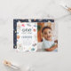 Um pequeno passo! Um belo convite de festas de aniversário com animais de aquarela pintados à mão flutuando no espaço. No lado esquerdo da carta, há uma estrutura com um astronauta de gato segurando uma bandeira, um astronauta de cachorro e um astronauta de girafa, aliens em OVNIs, um navio de foguetes, planetas, estrelas e muito mais! No lado direito, há uma foto personalizada de sua escolha. As cartas se revertem a um padrão divertido dos animais espaciais contra um fundo azul escuro. Celebre a primeira viagem do seu pequeno ao redor do sol com este convite de aniversário temático. Largue-me uma mensagem, se quiser que mude o texto para "dois a lua" ou qualquer outro tema etário! Visualize a coleção vinculada nesta página para itens correspondentes ou visite nossa loja para obter mais designs!