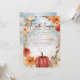 "Uma Pequena Abóbora" Está a Caminho dela e é tão excitante! Este design do Chá do Baby Sprinkle apresenta abóboras laranja queimadas e flores coordenadas de queda dispostas em um quadro para os detalhes do seu chá. Tudo em um céu com aquarela rústica e fundo terrestre. A design traseira apresenta uma repetição do céu e do fundo da terra com a coordenação da abóbora e do vaso floral. Design composto por Designs Holiday Hearts.