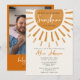 Este convite de baby shower boho 'um pequeno raio de sol' pode ser personalizado com suas informações em tipografia estilosa e sua foto especial no verso. Projetado por Thisisnotme©