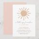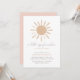 Convide amigos e familiares para celebrar um pequeno que está a caminho com este convite de chá de bebê boho, apresentando um sol em aquarela e uma paleta de cores rosa e neutra.