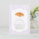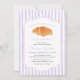 Celebre sua doce menina com este charmoso convite de chá de fraldas "A Little Croissant is on Her Way" em uma lavanda roxa suave. Este design apresenta um croissant de aquarela pintada à mão, um roteiro elegante, e listras púrpuras pastéis para uma sensação aconchegante e inspirada em parisiense. Uma escolha encantadora para uma padaria, um brunch ou um chá de fraldas de temas franceses. Personalize com seus detalhes de evento para uma celebração memorável e na moda.