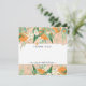"Um Pequeno Laranja Eucalyptus Bebê, Obrigado Por Notar Uma Placa Plana." A cor de fundo do damasco de pêssego suave pode ser alterada e é misturada com trabalho de arte de cor d'água das laranjas Cutie, flores, fruta de bebê, citrino e folha de eucalipto para o verso tem texto tipográfico, "um pouco de grãozinha está a caminho." Trabalho de arte por uma artista e designer internacionalmente licenciada, Audrey Jeanne Roberts, copyright.