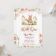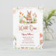 Celebre a chegada do seu pequeno com este encantador convite de chá de bebê com tema florestal, apresentando um adorável coelho segurando uma cenoura, cercado por tulipas macias e detalhes florais. A alegre mensagem "Um Pequeno Selvagem está a Caminho" torna este convite perfeito para chás de bebê de primavera, celebrações neutras em termos de gênero ou festas rústicas com tema florestal. Totalmente personalizável com os detalhes do seu evento, este design traz um toque caprichoso, caloroso e inspirado na natureza para o seu dia especial.