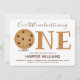 Um biscoito de chocolate, um primeiro convite de aniversário para bebês. Este convite é branco e marrom com a palavra "Um" em letras grandes, com uma ilustração de cookie como primeira letra da palavra. É excelente para um biscoito ou um tema de aniversário de leite e biscoitos. Simplesmente personalize este convite, adicione-o ao seu carrinho e feliz aniversário ao seu bebê maravilhoso! One Cookie First Birthday Convite Sweetsham Comida Art | ©Melissa Patton — Artista/Ilustrator
