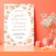 Este adorável convite apresenta pêssegos aquosos, flores e verde, perfeito para celebrar o primeiro aniversário da sua menina.