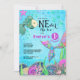 Sereia Primeiro Convite de Aniversário para sua festa de aniversário de Sereia de 1rua. Uma das focas com a cauda da sereia, peixes, estrelas-do-mar, conchas e decoração de corais este convite fácil de personalizar para raparigas que amam sereias.