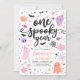 Convite para primeiro aniversario Fantasma de Halloween de um ano bonito Todos os designs são © PIXEL PERFECTION PARTY LTD