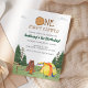 Um primeiro aniversario Feliz Camper Camping Watercolor Convite.