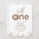Moderno e Minimalista Leão de Palavra Selvagem Um Convite Simples, mas doce, selvagem, para um tema de primeiro aniversário para um bebê que apresenta a cabeça de leão como parte de uma palavra. Este convite de um primeiro aniversario selvagem é ideal para alguém que gosta de simples designs de convite modernos.