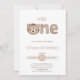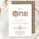 Celebre o seu primeiro aniversário com este adorável convite para os ursos. Apresentando um rosto de ursinho de pelúcia desenhado à mão, tons castanhos aconchegantes e uma letra divertida de "UM", esta design é perfeita para um tema neutro, de floresta ou de festa rústica. Personalize com o nome, a data e os detalhes da festa do seu filho. Uma escolha doce e eterno para rapazes, raparigas ou celebrações neutras em termos de gênero.