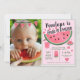 Verde-rosa-claro em um primeiro convite de aniversário de melão com itens de melancia. Substitua a foto do marcador de posição por sua própria foto do bebê. Um tema de aniversário de excelente para o verão! A parte de trás do convite está à vista. Whimsical e fofo! Consulte a coleção de cheios de itens correspondentes para este design em: https://www.zazzle.com/collections/one_in_a_melon_baby_birthday_party-119209815727560938