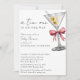 Uma Tini Está A Caminhar Um Simples Convite Mínimo Para Chás de fraldas De Martini Rosa - Um simples, minimalista, convite para chás de fraldas de aquarela para uma menina. Apresentando caligrafia de script e fonte de bloco elegante. Uma ilustração aquosa de um martini sujo com duas azeitonas e um arco cor-de-rosa coquetel enfeita o canto superior direito. Edite este modelo de convite de chá de fraldas com seus próprios detalhes de evento. Todo texto é editável. Também disponível como um download digital instantâneo, uma forma ecologicamente correta de enviar convites via texto, email ou mídia social.