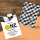 Prepare-se para celebrar um marco com esta tendência Um Feliz Homem Primeiro Aniversário Convite Digital Editável Modelo. Este design legal apresenta a frase icônica "UM FELIZ DUDE", um smiley face de entalhe com parafusos de relâmpagos e um padrão clássico de tabuleiro de xadrez, tudo em uma paleta de cores na moda preto, branco e amarelo. É a escolha perfeita para uma primeira festa de aniversário retrô ou moderna para um bebê.