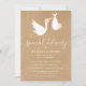 Apresentando um carregando de cegonha giro, uma entrega muito especial, em um fundo natural de bico rústico, este convite para bebês, chás ou casais neutro em relação ao gênero é perfeito para todos os pequenos que estão a caminho. Adicione seus detalhes de celebração em texto elegante para criar o convite perfeito.