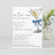 Um Tini a Caminho Convite de Chás de Bebê Simples Minimalista Azul com Código QR - Um convite de chá de bebê simples, minimalista e aquarela para um menino. Com caligrafia cursiva e fonte bloco elegante. Uma ilustração aquarela de um martini sujo com duas azeitonas e um laço azul coquete adorna o canto superior direito. Edite este modelo de convite de chá de bebê com os detalhes do seu evento. Facilite o acesso dos seus convidados à sua lista de presentes adicionando o URL do site da sua lista de presentes ao modelo de Código QR no verso do convite. Todo o texto é editável. Também disponível como download digital instantâneo, uma forma ecológica de enviar convites por mensagem, e-mail ou mídia social.